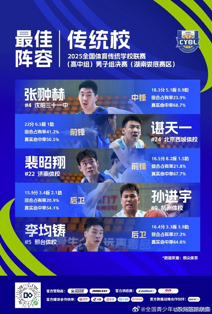 经典 校职业联赛 最佳阵形 :张翀赫、谌天一、裴昭翔、孙进宇、李均铸