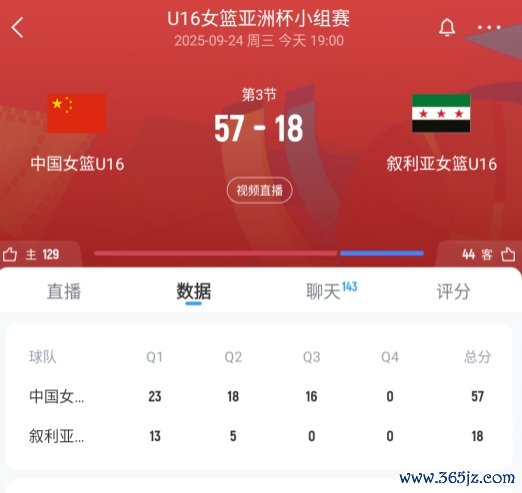 一分未得!U16女篮亚洲杯中国队第三节单节将叙利亚限制只得0分