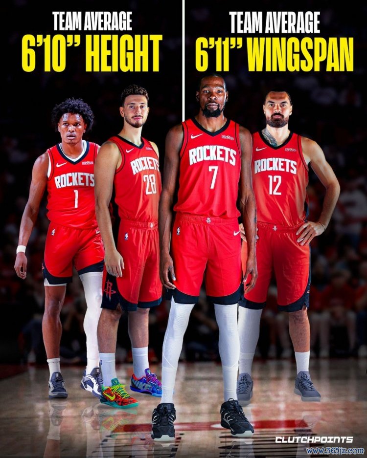 给你十足的压迫感!火箭潜在杆位平均身高2.08米!锋线臂展2.11米