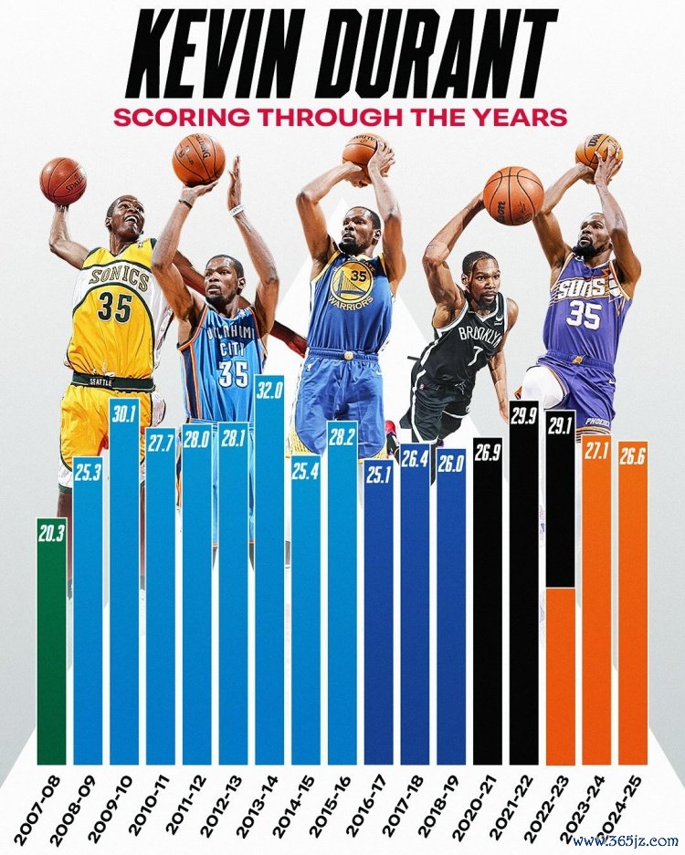 今年会涨会跌?杜兰特历年场均积分 数据 从未低于20分!