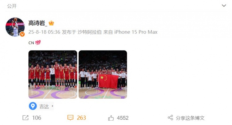 高诗岩赛后分享男篮全队合影:中国男篮 💯