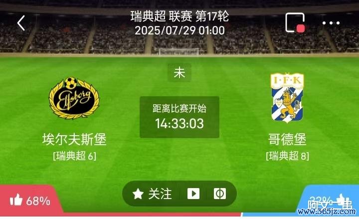 推荐比分:2-1(埃尔夫斯堡胜)或 1-1(平手 )若埃尔夫斯堡早破门:可依靠控场扩大优势,但难穿盘(2-1)。若久攻不下:哥德堡反击偷分,逼平强敌(1-1)。