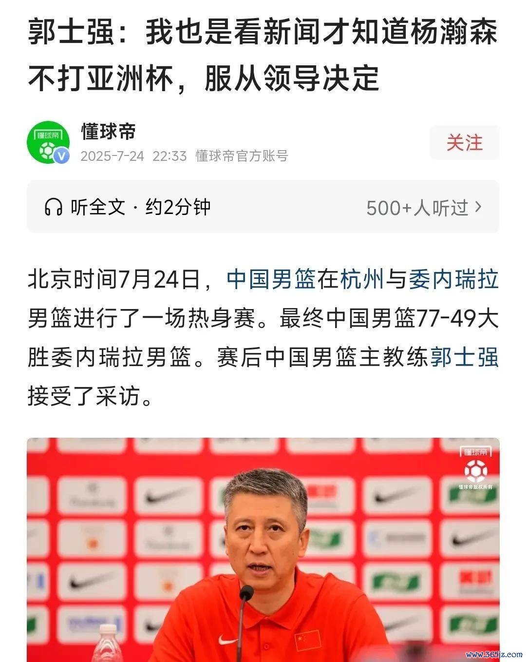 杨瀚森在参加完NBA夏季职业联赛 后,主动申请前往美国,前往开拓者队参加8月份的练习 营。篮球赛 协会对此表示支持,并认为这对他的技术提升将大有裨益。然而,这一决定也意味着他将无法参加即将进行的亚洲杯赛事。对此,郭士强在接受采访时表示,他会尊重领导的决定,并承认失去杨瀚森对球队内线的冲击是相当巨大的,但他会想尽一切办法来克服这一困难。郭士强感到无奈与压力, 排球资讯因为球队的内线阵形 需要进行调整和补充。