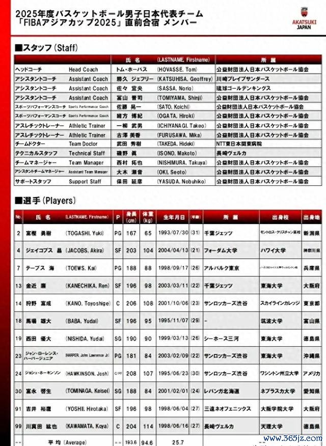 日本男篮公布了亚洲杯的12人名单!具体名单如下:nba今日最新消息