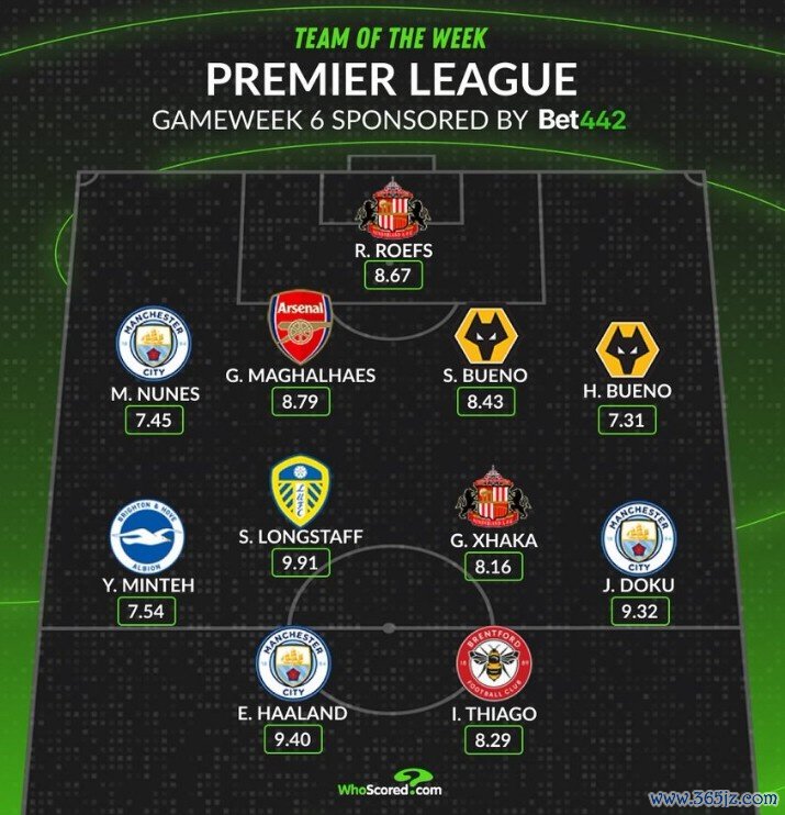 Whoscored评本轮英超最佳阵:哈兰德领衔、加布里埃尔、扎卡在列