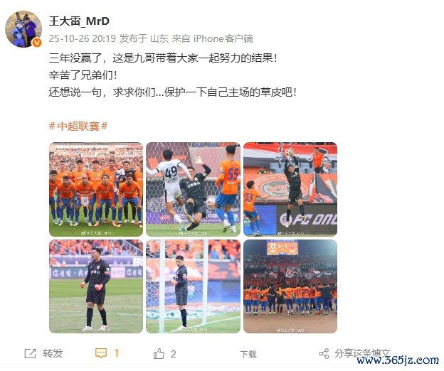 草皮质量不佳!王大雷:求求你们…保护一下自己主场作战 的草皮吧!